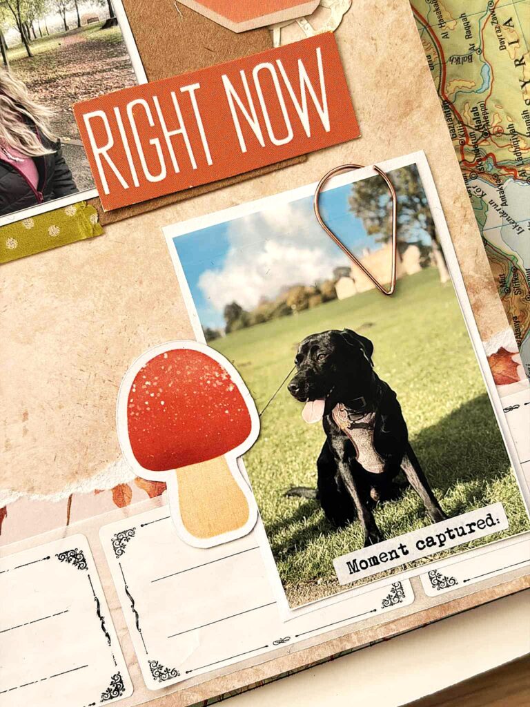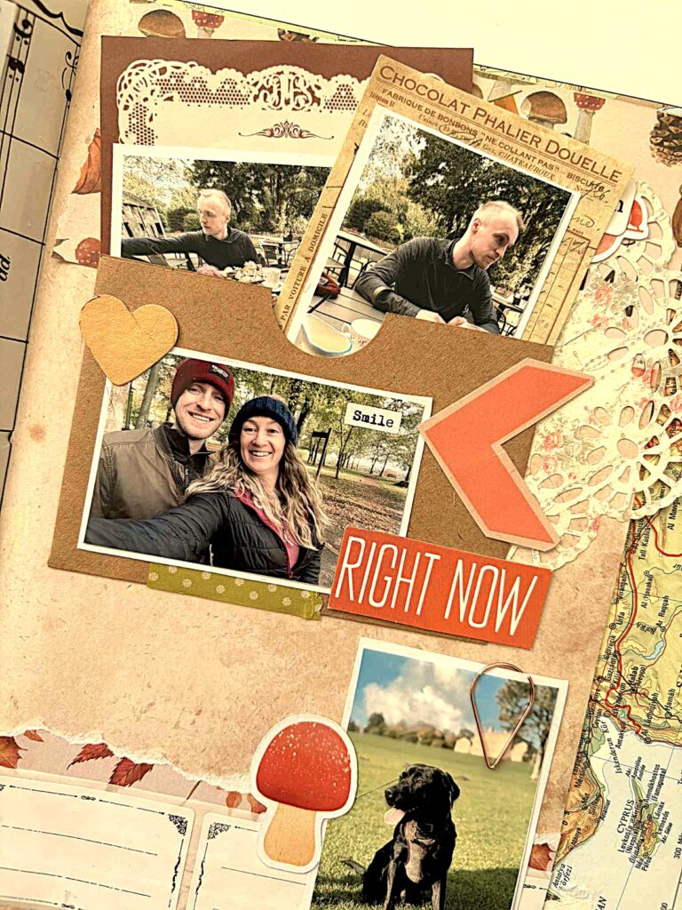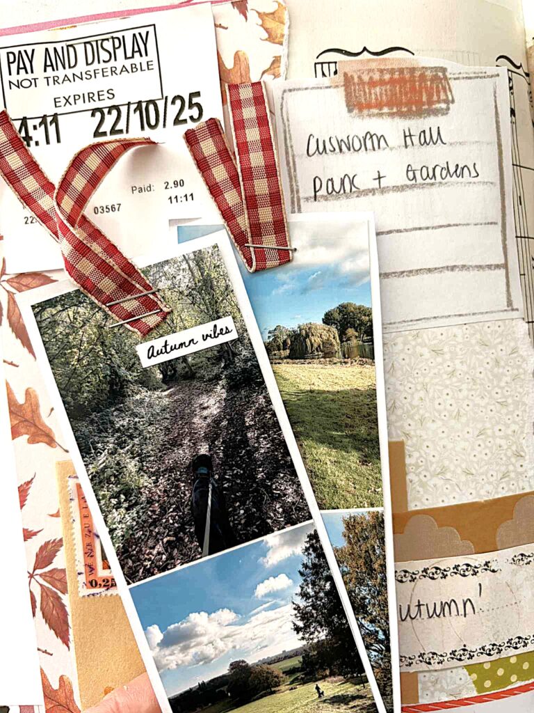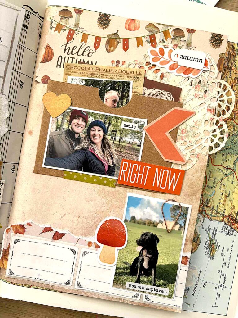 Paper – obvious easy one – lots of autumnal and natural colours to break up the page