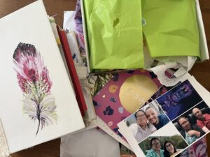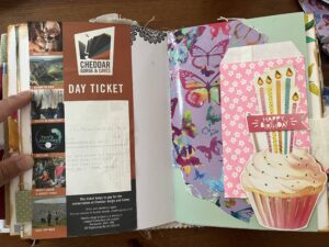 As usual , I saved up a bit of ephemera – tickets, leaflets, gift wrapper and birthday cards.