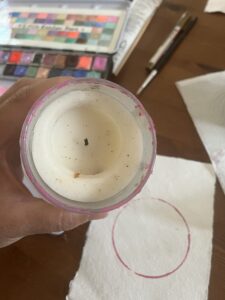 First , look for a lid cover or a jar that will fit nicely in the middle of your paper. I used a candle jar as it is the only one that seems to fit.