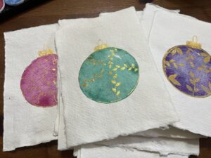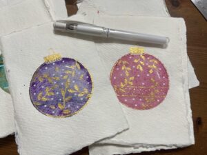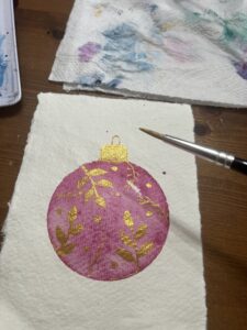 Using the same gold paint , I then painted lines , foliage , simple doodles and the hanging cap ( Im not sure whether this is the right term..) of the bauble.