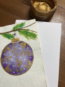 Using a black gel pen , I drew the string to make the bauble look like it is hanging from the branch.