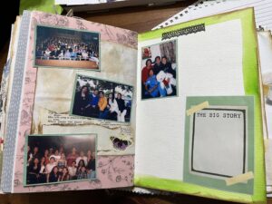 I printed my photos using Canva to create a photo collage and then printed it using my Canon Selphy. I then cut my photos out and backed them with the green paper / card stock that was included in the kit.