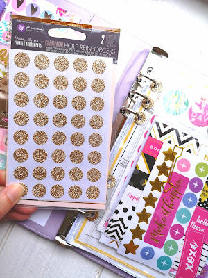 I reinforced the holes with beautiful glitter hole reinforcers…