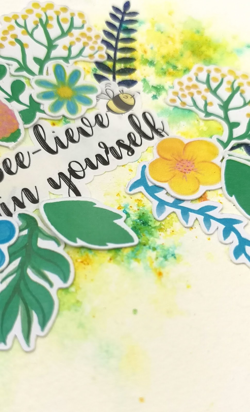 This is where creativity struck. I was going to sketch some flowers. But seeing the die cuts gave me an idea. I would create a bouquet with those! Et voila!