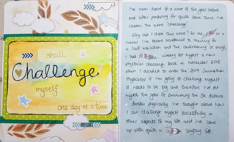 I loved that Nora embraced the ‘word of the year’ for the first time and also that whilst writing this out Nora made a few mistakes and rather than worry, she used the feather stickers from the kit to cover which is such a wonderful addition to her page. Being creative isn’t about perfection, it’s often embracing the imperfections. I think this page is just PERFCT!!