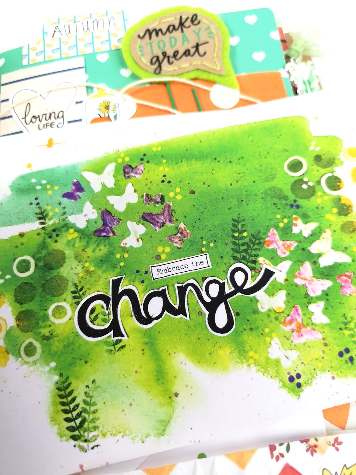Thankfully, it was a success! I then added some sequins and both the ephemera and butterfly shiny decors that came with the kit. Then I finished the dashboard off by stitching all the way around.