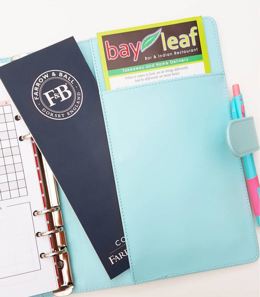 The size is so much better for fitting all the info in. I still love having pretty front pockets but the big secretarial pockets will soon be full of stuff! I’ve already got paint charts and menus in the back.